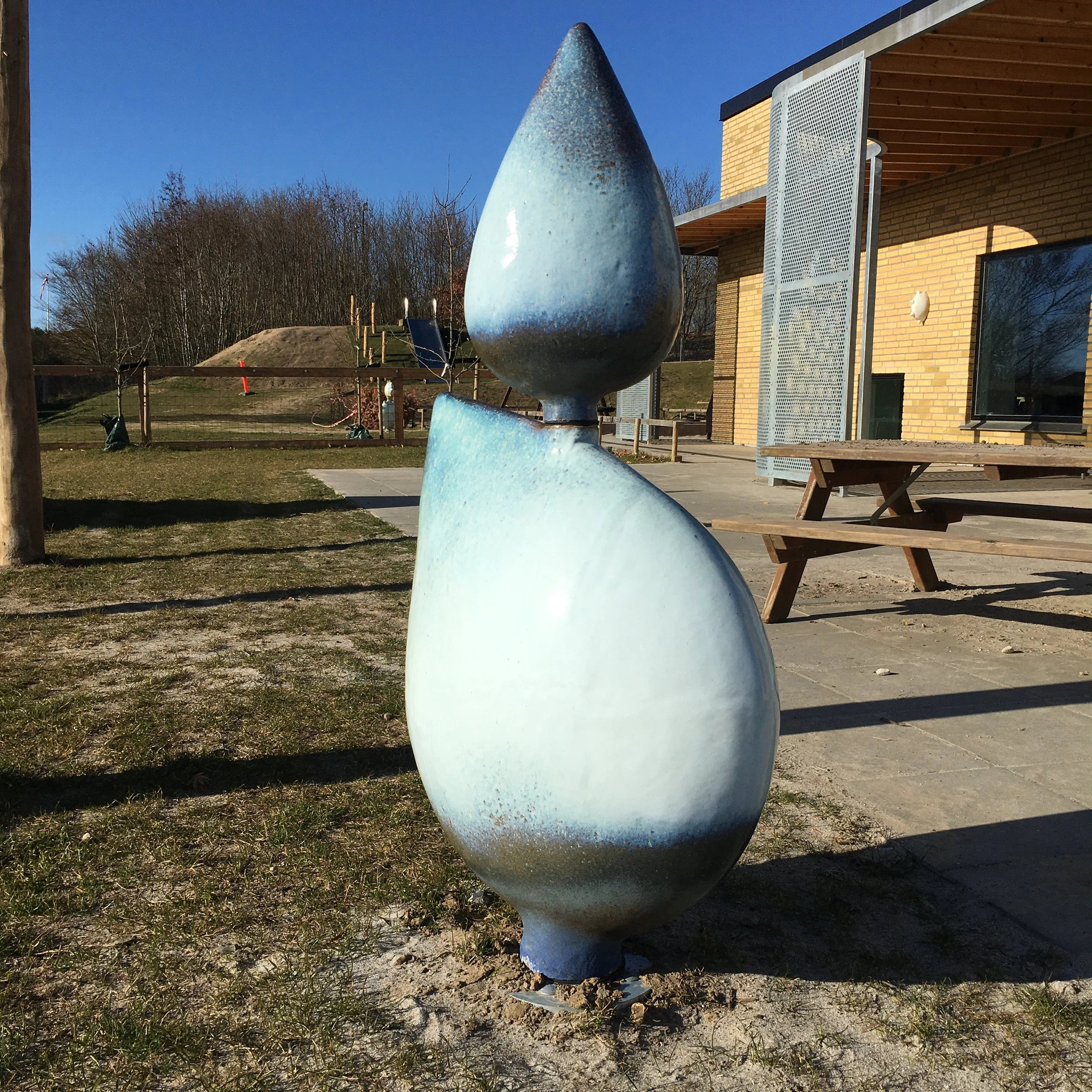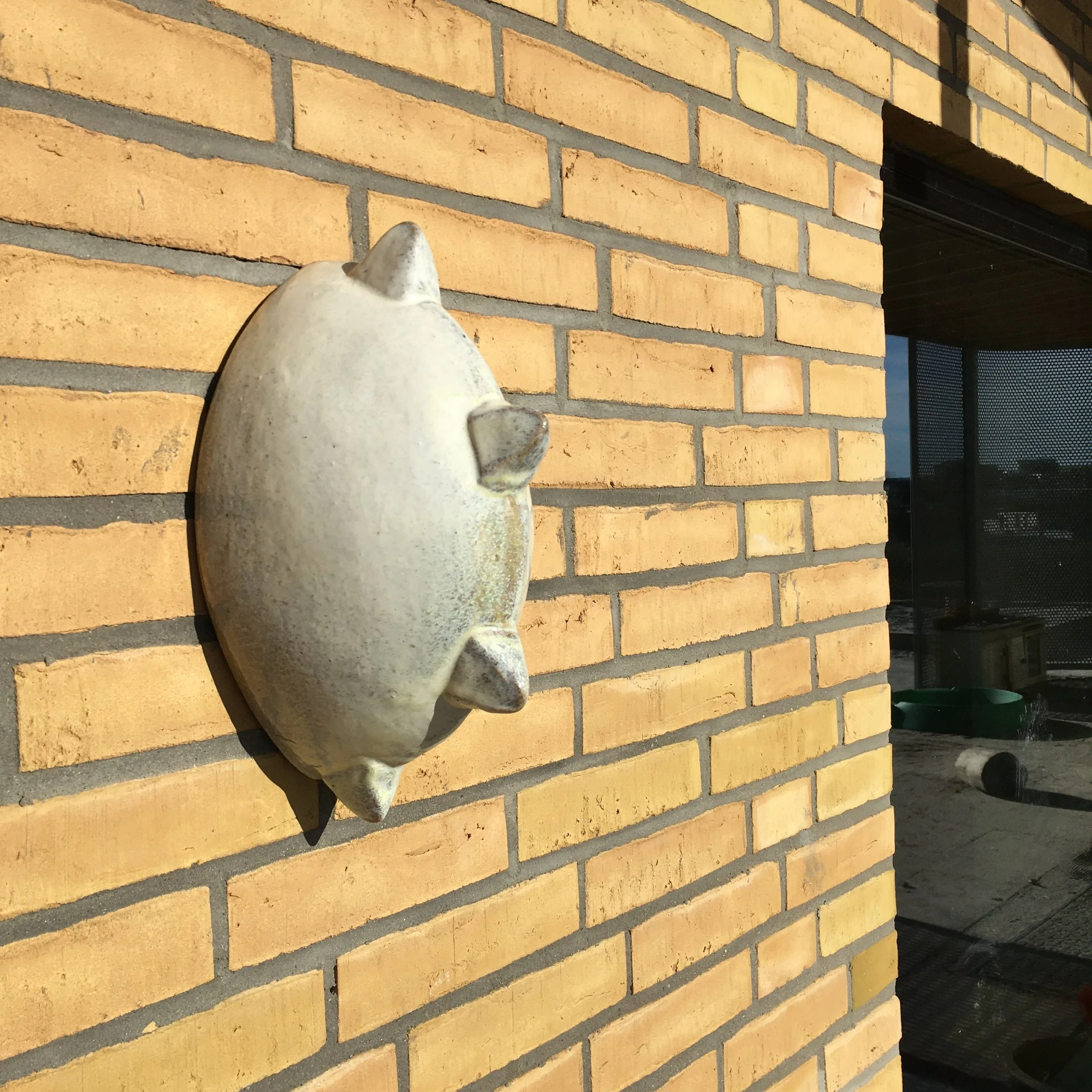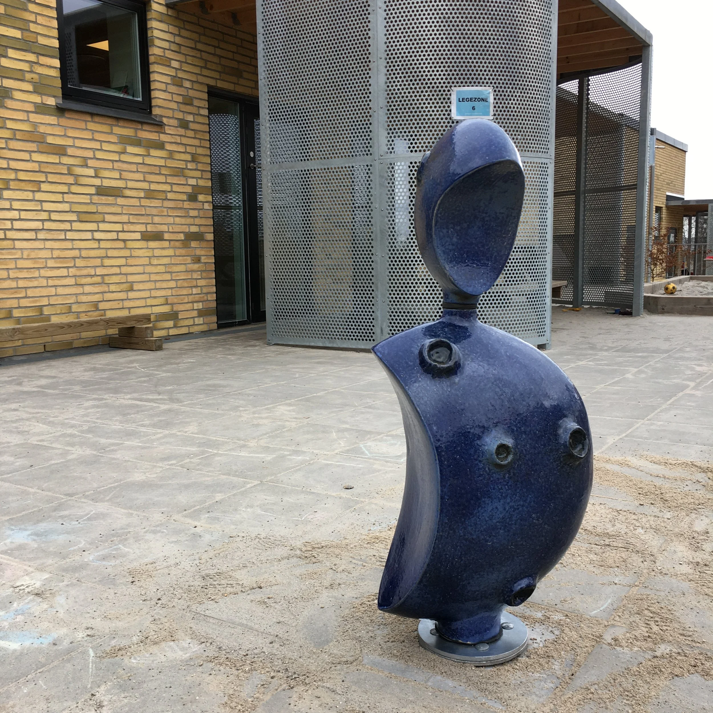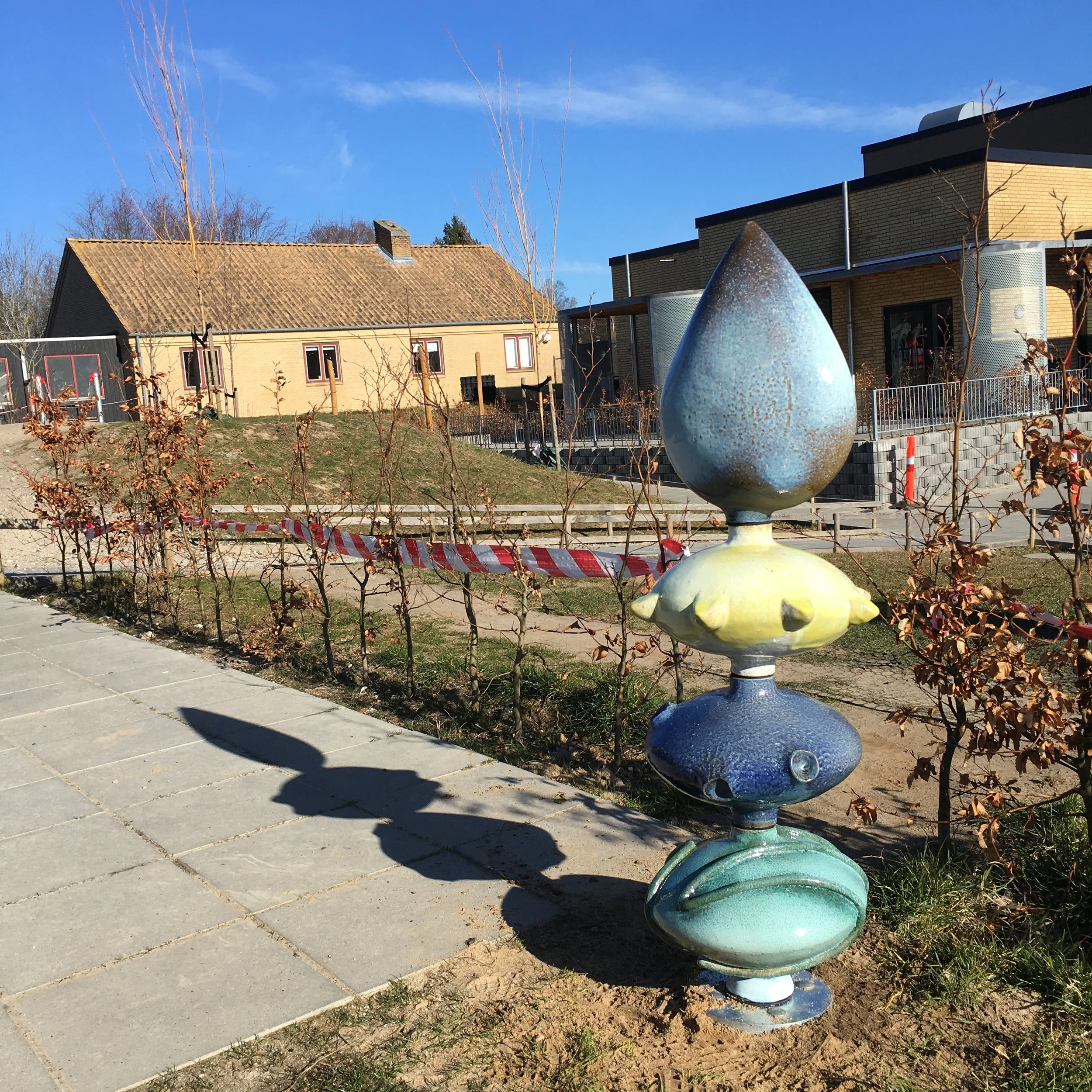 Jeg har skabt en udsmykning, som via gennemgående og genkendelige keramiske objekter relaterer sig til de forskellige afdelingers profil og navn. De skal virke som vejvisere eller samlingsmarkører samt forstærke brugernes tilhørsforhold og fællesskabsfølelse. Skulpturerne skal appellere til fysisk interaktion og bidrage til udelivets øvrige aktiviteter samt udeområdets æstetiske kode.