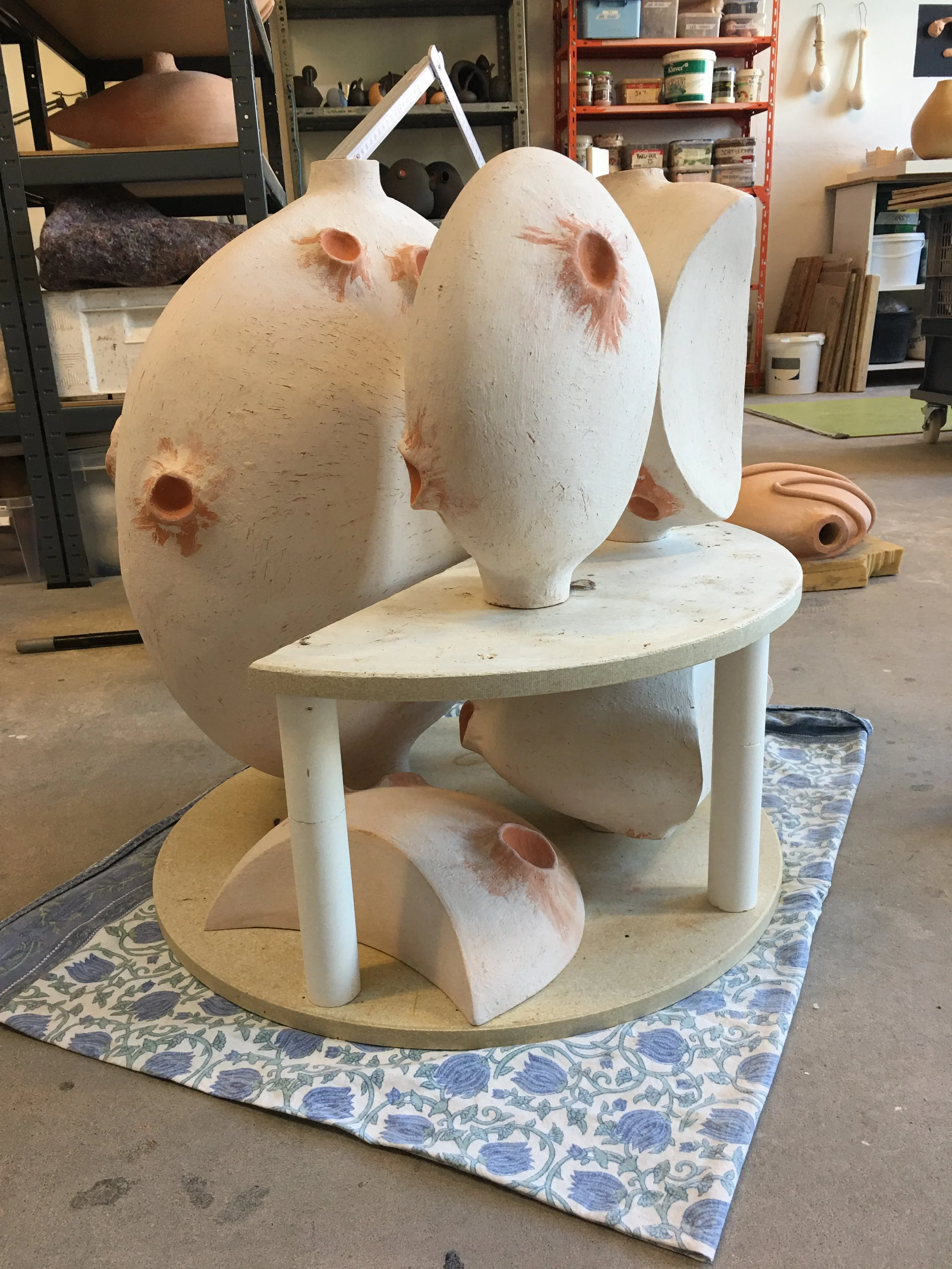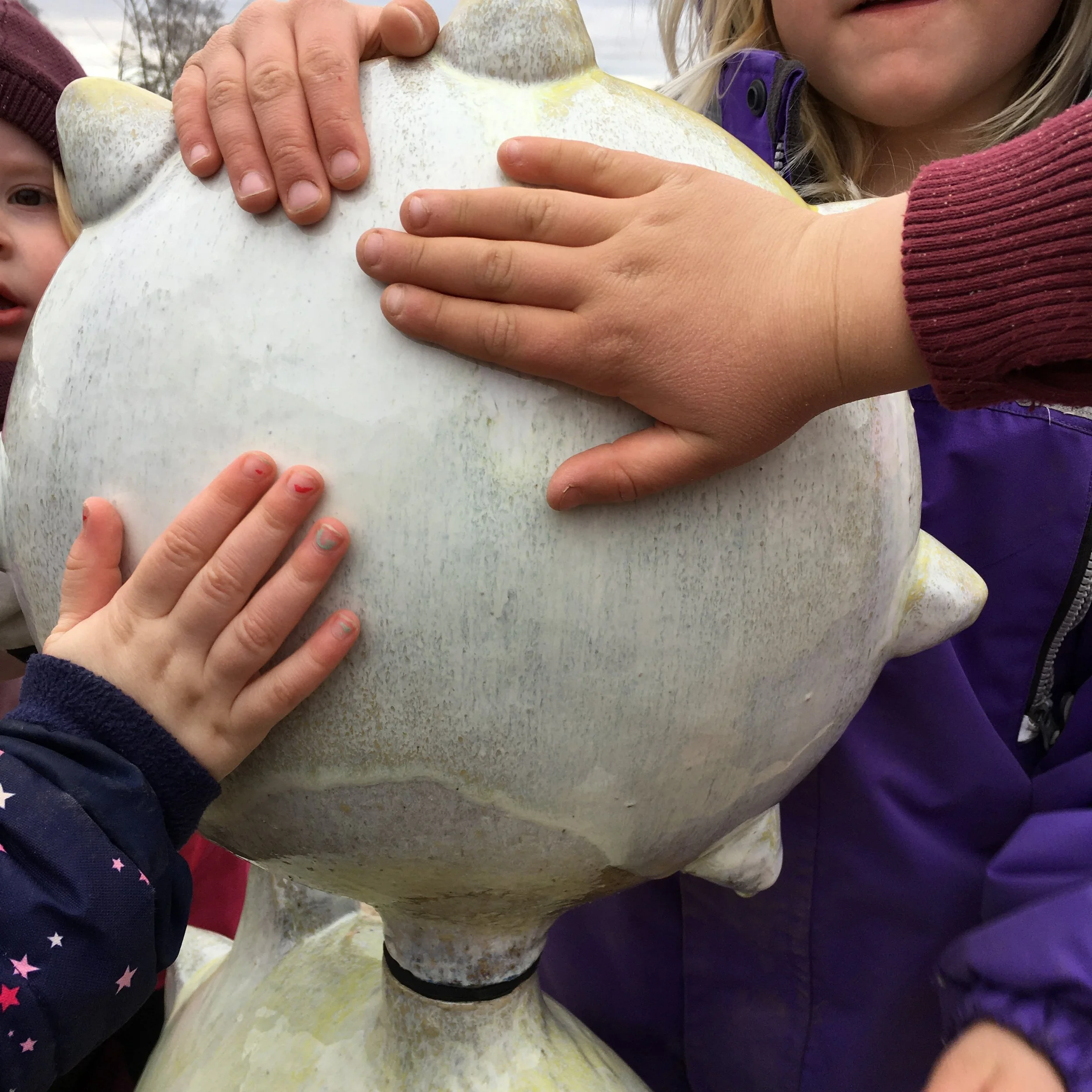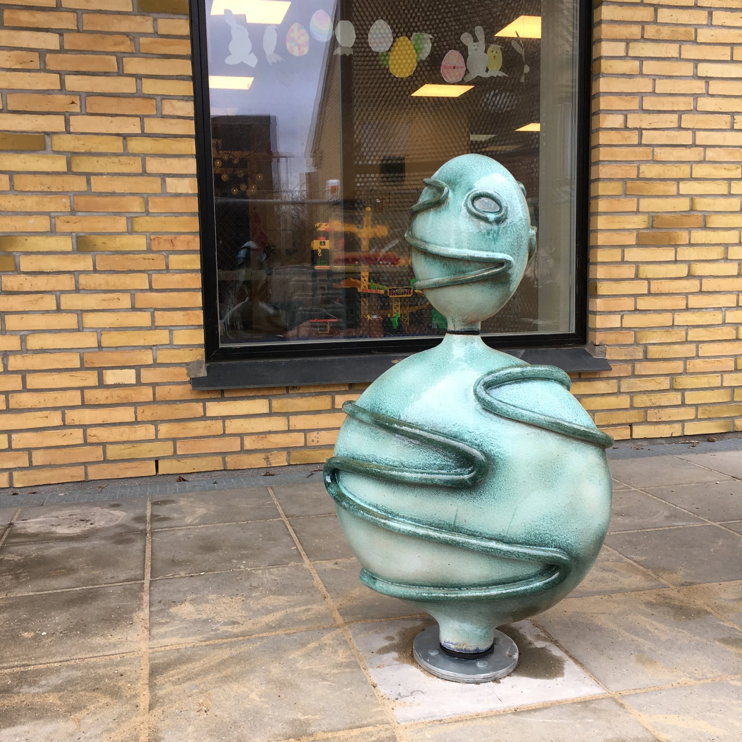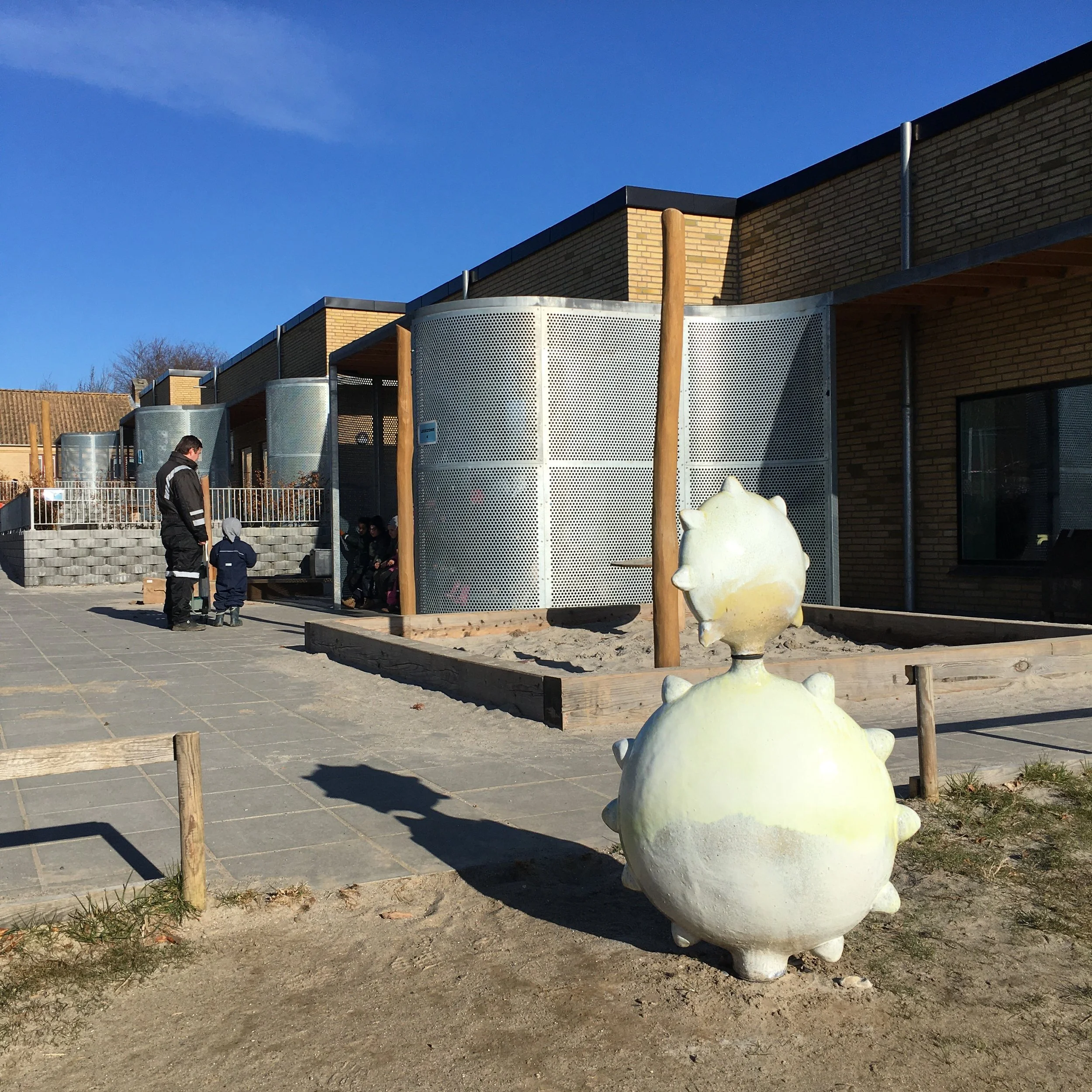 Jeg har skabt en udsmykning, som via gennemgående og genkendelige keramiske objekter relaterer sig til de forskellige afdelingers profil og navn. De skal virke som vejvisere eller samlingsmarkører samt forstærke brugernes tilhørsforhold og fællesskabsfølelse. Skulpturerne skal appellere til fysisk interaktion og bidrage til udelivets øvrige aktiviteter samt udeområdets æstetiske kode.