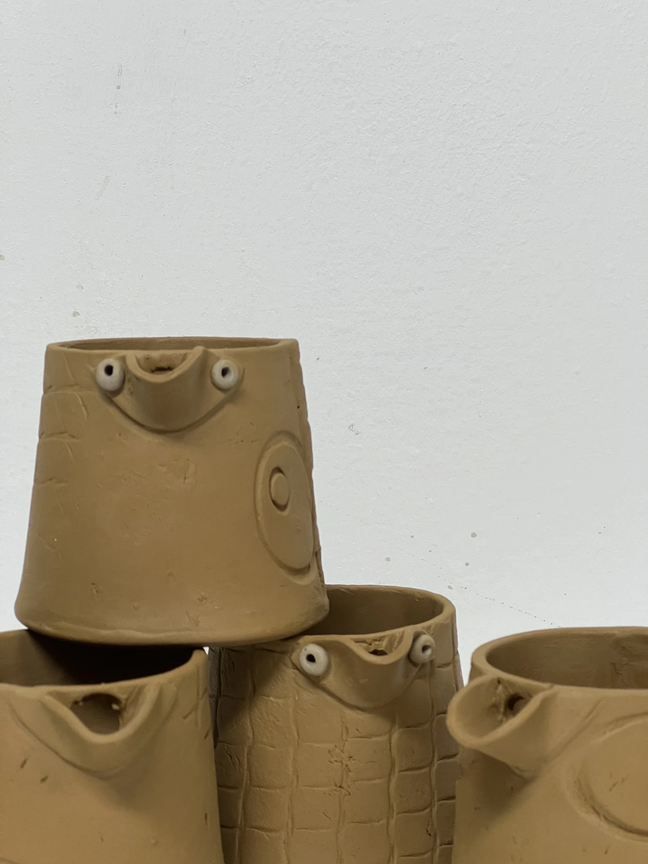 Jeg præger mine brugsværker med hverdagsobjekter, uddrag fra min ungdoms poesibog eller musiktekster fra 90ernes Danmark. Det trækker minder frem på en subtil og nærværende måde. Prægningerne i mine brugsværker levner plads til inspiration og ro for både øje og hånd, da overfladestrukturen både visuelt og taktilt træder frem og bliver deltager i mødet med hverdagens mad og mennesker.