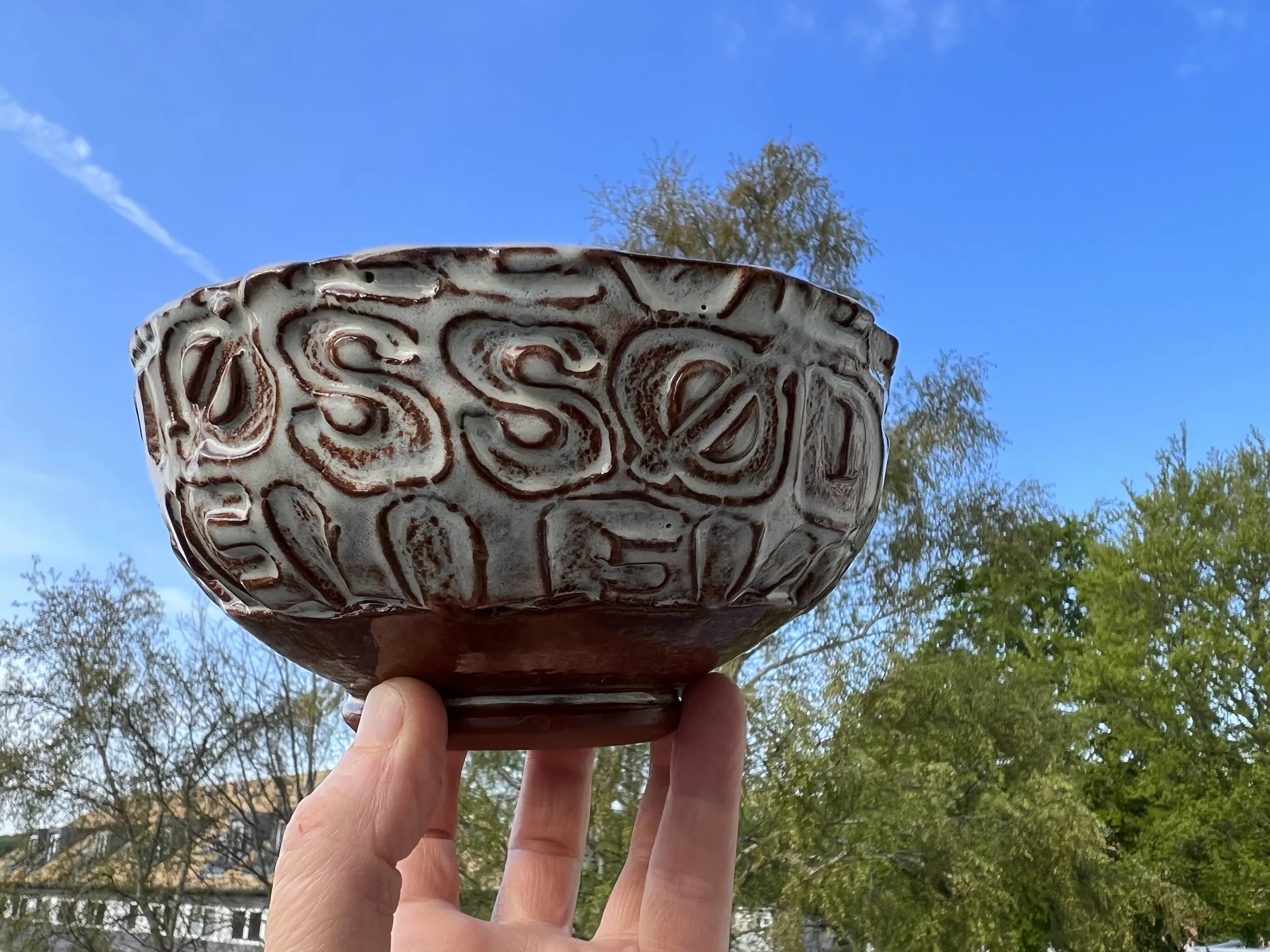 En skål (uanset størrelse) er til eksempel i hånden ca. 22 gange fra den er ler-klump til den er klar til salg. Det tager ca. syv dage at producere en skål men da jeg altid fylder ovnen helt før jeg brænder, skal du måske vente lidt længere, hvis du bestiller/ønsker et særligt design.