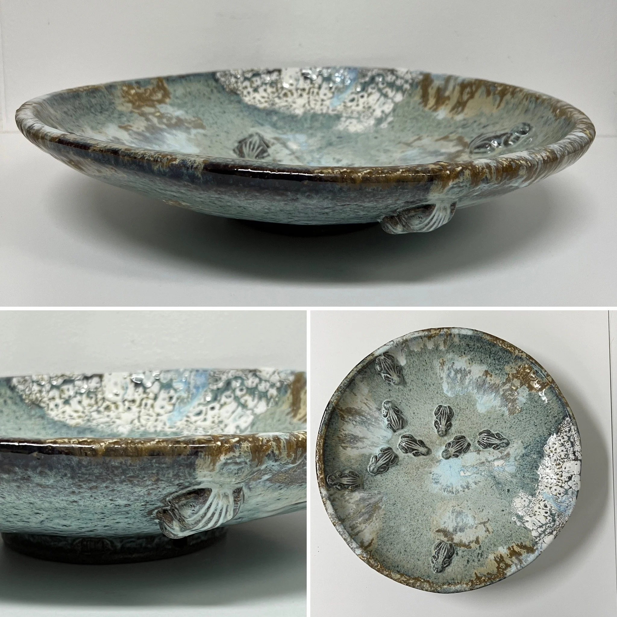 Teknisk set er de fleste af mine brugsværker fremstillet ved at kombinere “kaste” og “drejeteknik”. Jeg præger to-tre cm tykke ler-skiver og kaster dem til de er tynde og kan foldes og samles til f.eks. skål-kanter og låg. Når jeg “kaster” med leret kommer overfladestrukturen til at fremstå dejlig uforudsigelige i mønstret. Glasuren er udviklet til at “trække kant” dvs. at den fremhæver emnernes individuelle strukturer. Ikke to af mine brugsværker er ens, men de er i familie.